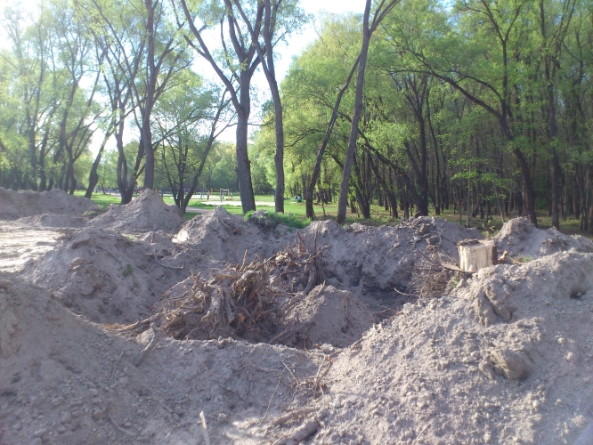 Спустя пару лет решили немного прибраться на городском пляже, выкорчив при этом здоровые деревья. Не понятно конечно для чего. Ни кому данные деревья не мешали и создавали на пляже дополнительную тень.