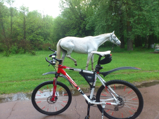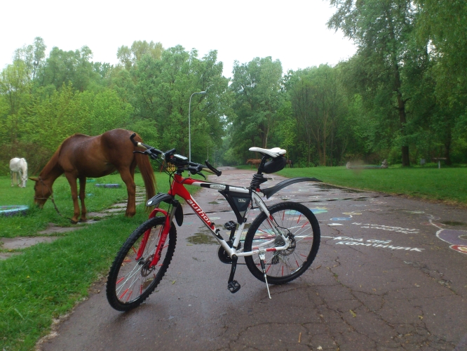 Итак сегодня идет почти целый день идет время от времени дождик, но это было не помехой мигом проскочить на гараж - там позаниматься делами, выпить бутылочку вкусного пивка на свежем воздухе. И насладиться можно таки сказать отсутствием людей в городском парке, а также на пляже. По дороге на пляж были замечены несколько четырехногих, которые были1 запечатлены на фоне двухколесного.